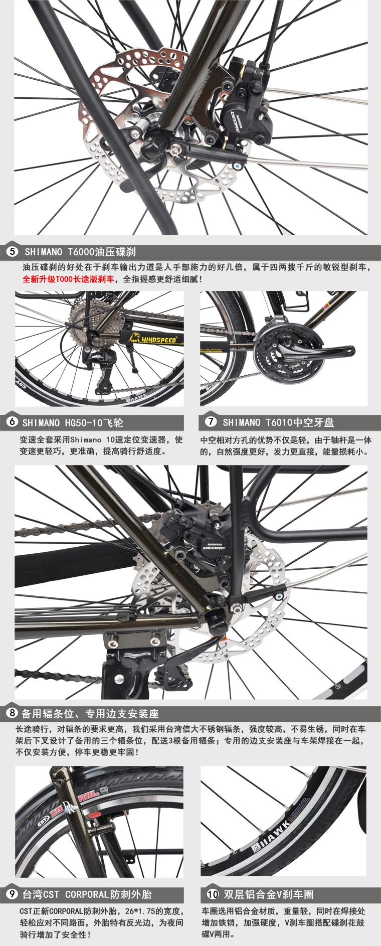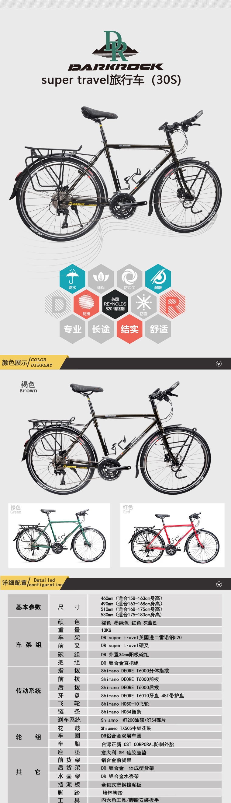 新增灰藍色,尺寸有:460/490/510/530mm,現貨配置為M6000指撥前撥后撥 MT500牙盤 M4100飛輪 MT200油碟。如下圖: