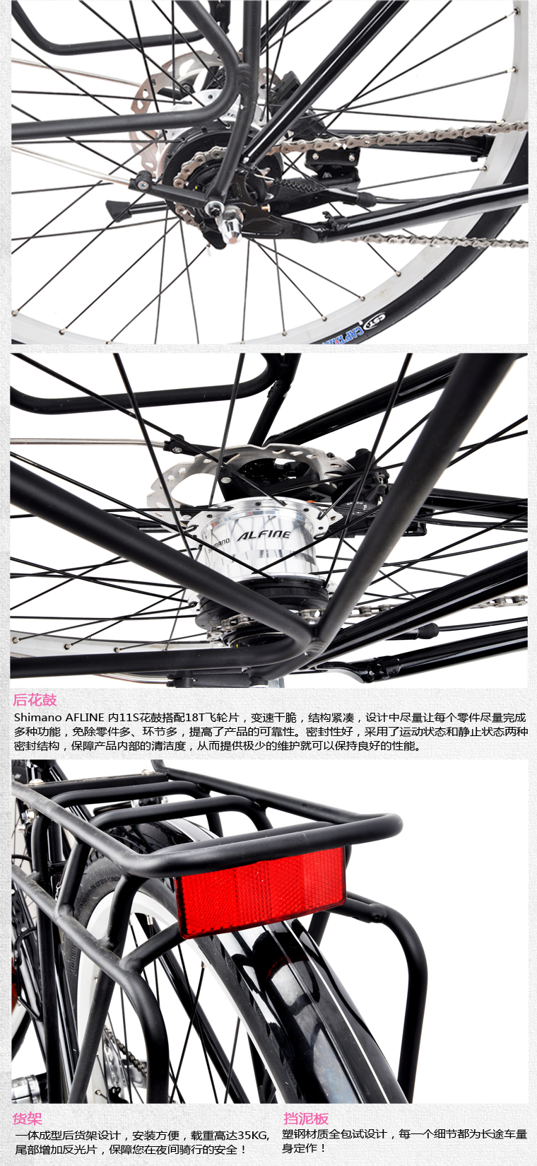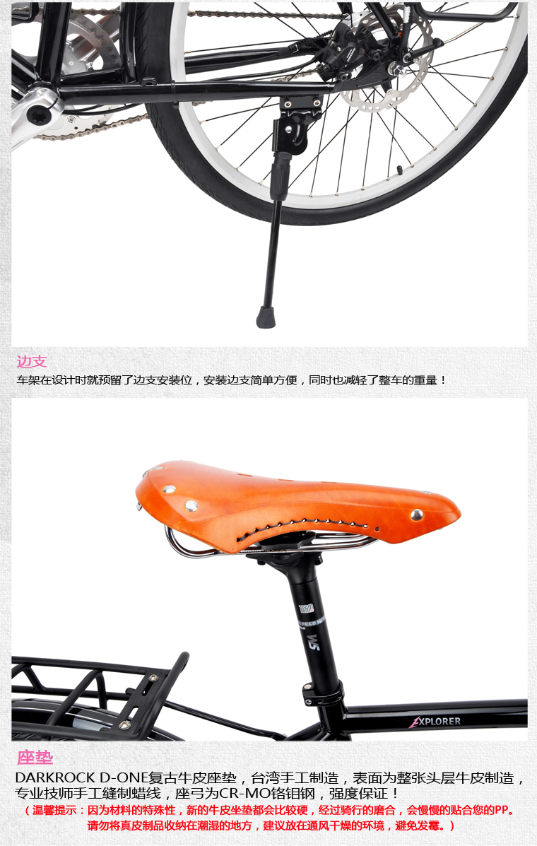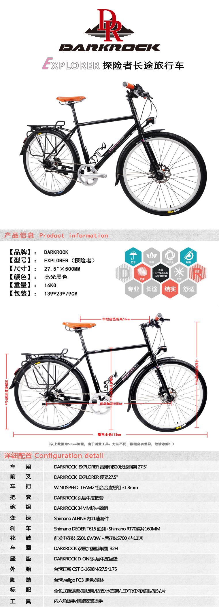 DARKROCK首款27.5寸長途旅行車,shimano 內11S變速套件,前發電車燈,搭配牛皮把套及牛皮坐墊,復古風十足。