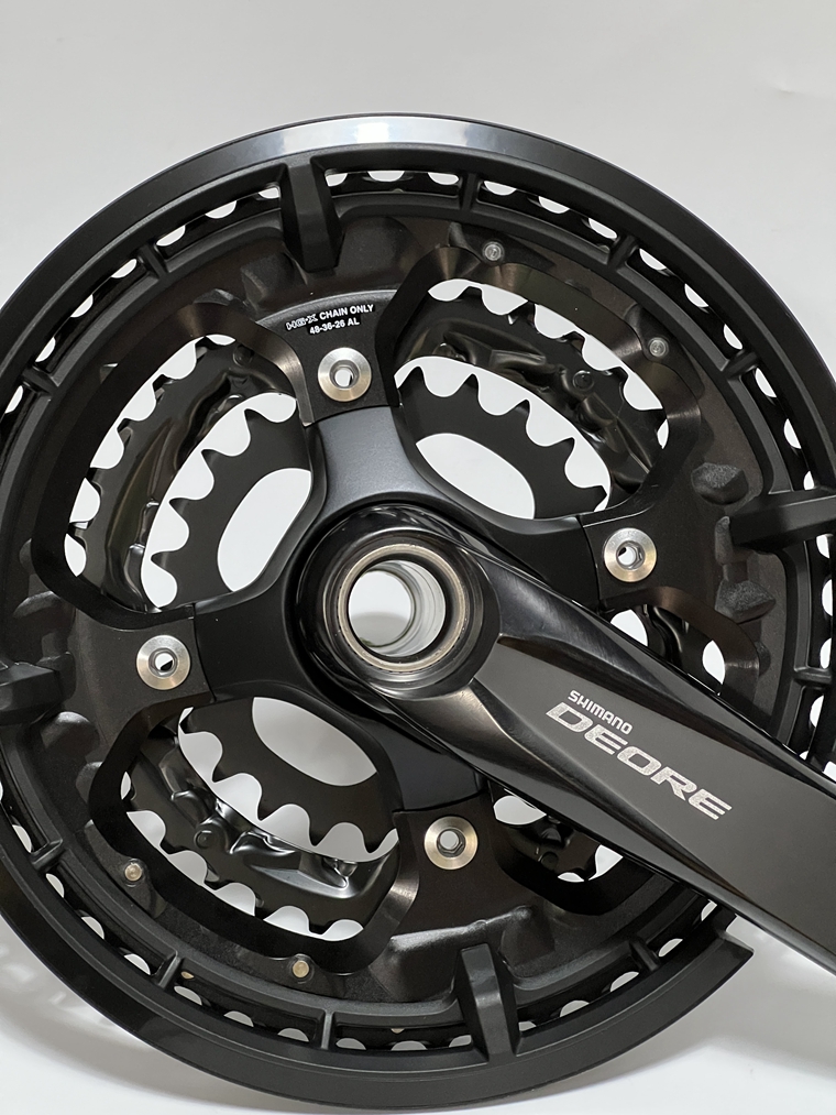 Shimano DEORE T6010一體牙盤(48T),黑色,齒數為:48-36-26T。重量約950g。