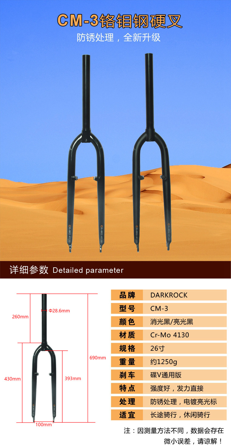 DARKROCK CM-3鉻鉬鋼硬叉全新上市,碟V通用,重量1250g,線型優美,強度可靠!