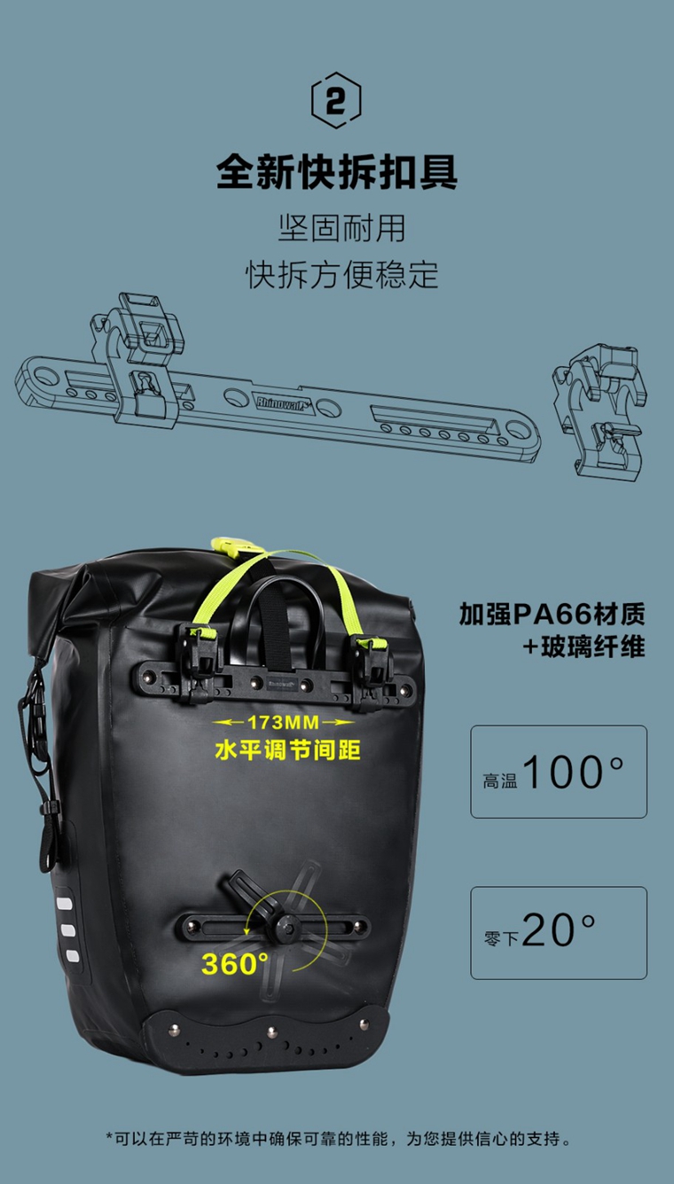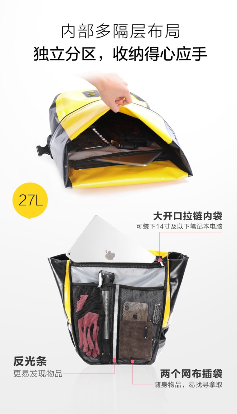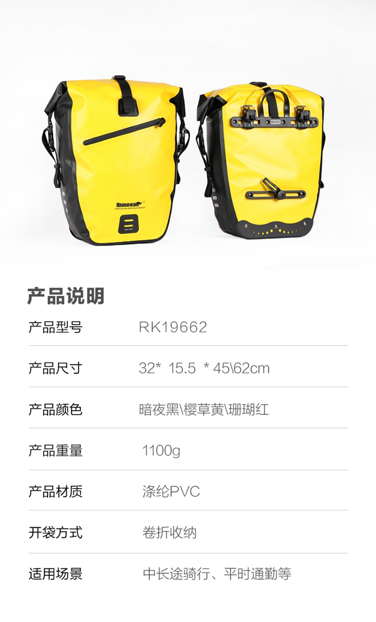 RHINOWALK 2019新品 全防水后貨架馱包,有黑色,紅色,黃色可選。27L跟20L可選,20L可做前馱包,也可以做貨架馱包。