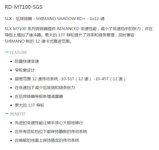 Shimano SLX M7100 SGS后撥1*12S