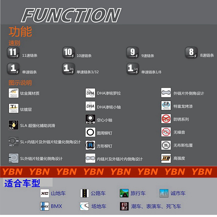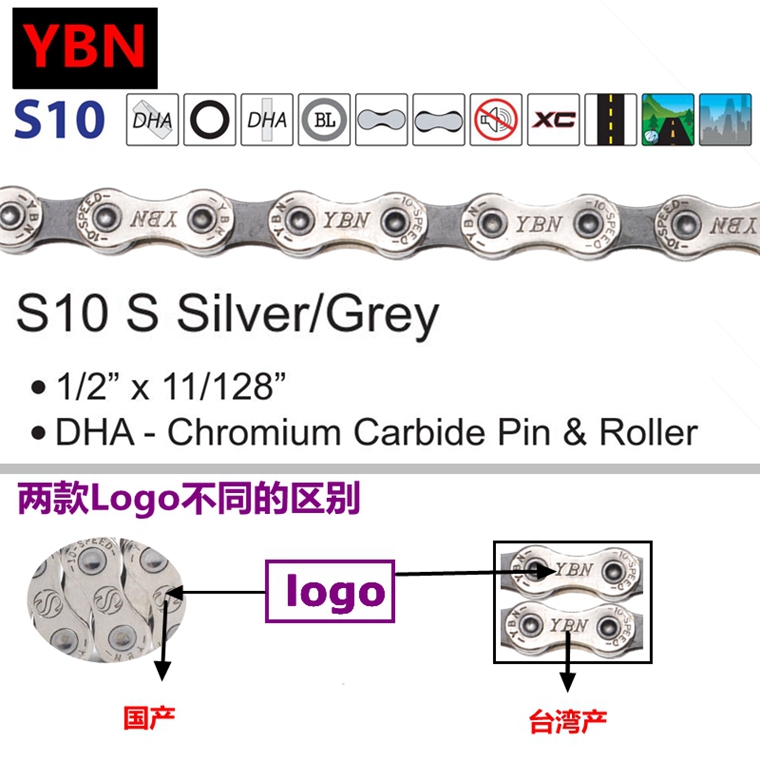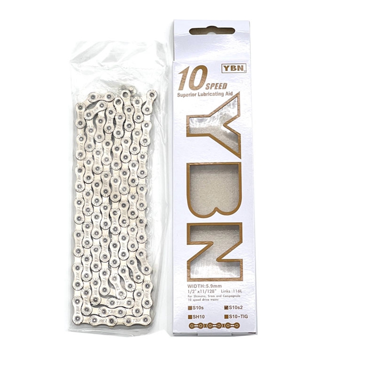 臺灣雅邦YBN S10-S2 10速鏈條/全銀色 ,116節,116節,兼容shimano 速聯 藍圖等變速,公路 山地通用,盒裝行貨。