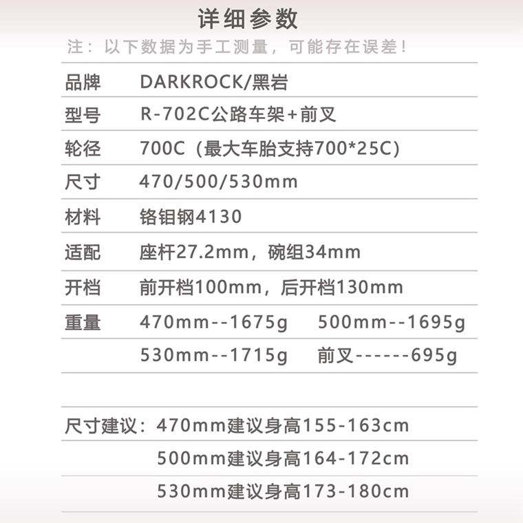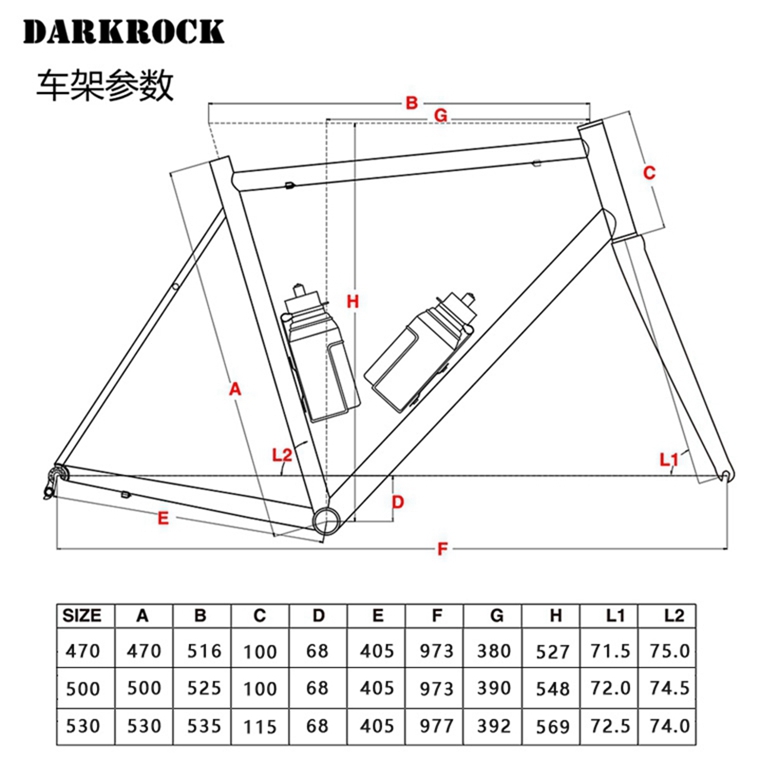 DARKROCK R-702C公路車架+前叉,進(jìn)口鉻鉬鋼4130材質(zhì),表面電鍍處理,尺寸可選:470/500/530mm。