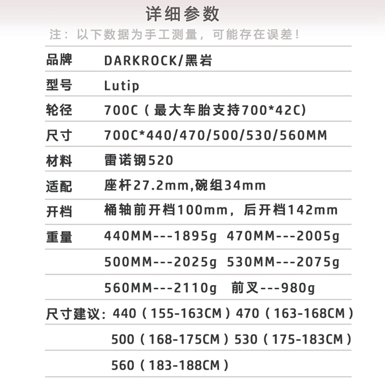 尺寸:700C*440/470/500/530/560MM