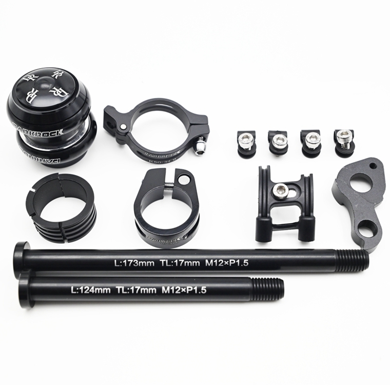 車架附件:①座桿夾*1 ②專用前撥變徑環*1 ③34.9前撥轉換座*1 ④培林碗組*1 ⑤桶軸桿M12*124MM*1 ⑥桶軸M12*173MM*1 ⑦尾勾*1 ⑧水壺架螺絲*4 ⑨導線板*4 ⑩過線器*1